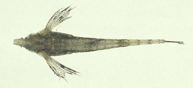 型態特徵:體縱扁而寬,完全被覆堅硬骨板,包括背部側4節、腹部側5節以及尾環12節,前9節可移動,後3節則相連一起;後面數節尾環中側具隆起稜。枕部不具凹窩。吻部突出,兩側各具隆起稜,稜脊具鋸齒狀。體無鱗。背鰭位於體後,與臀鰭相對,無硬棘,僅具5軟條;胸鰭大形,呈水平翼狀,具透明鰭膜以及9-12不分枝軟條,第5軟條發達呈觸手狀,遠厚於其它軟條;腹鰭具I棘,第一軟條延長呈觸手狀。體背及體側淡褐至黑褐色;體腹淡色;胸鰭具兩縱列褐色帶及黑褐、黃白色斑點;尾鰭亦具數列黑褐色斑點。