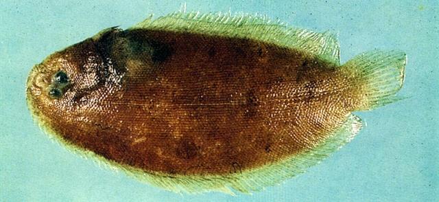 型態特徵:體長卵形,極側扁;兩眼在右側,眼間隔處具鱗片。前鼻管單一短小,伸達至極短小的後鼻管之前。頭短鈍。口小,近下位,僅盲側上下頜具細齒帶;顎骨無齒。兩側體側皆被櫛鱗,側線被圓鱗。背鰭與臀鰭基部無孔,背鰭、臀鰭鰭條不分枝,或僅末端分枝,鰭膜上不被鱗;無胸鰭;腹鰭左右對稱或近對稱,眼側者基底短;尾鰭與背﹑臀鰭分離。眼側體褐色,頭及身體散在灰黑色點,各鰭無黑褐色網紋;盲側淡黃白色,鰭色也較淡。。