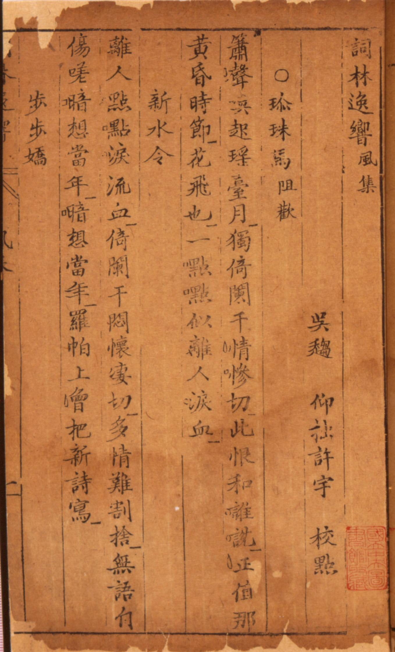 (明)許宇(1623)。[詞林逸響]。《數位典藏與數位學習聯合目錄》。http://catalog.digitalarchives.tw/item/00/08/6d/c7.html(2025/01/16瀏覽)。