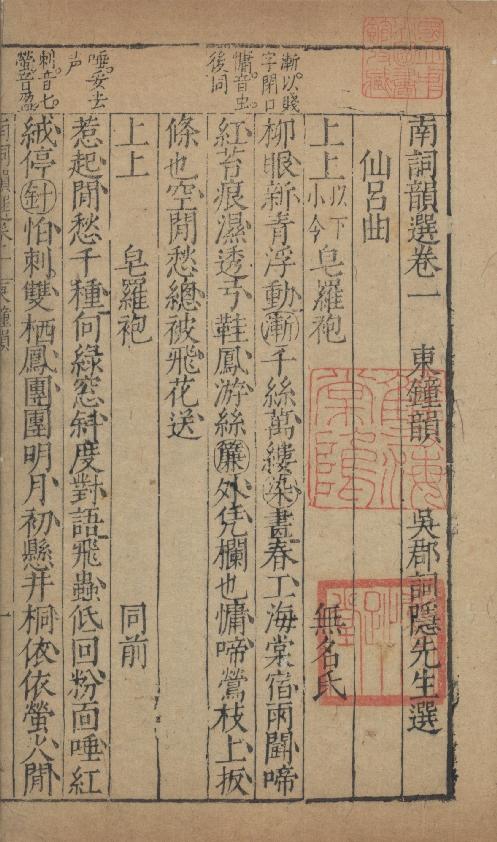 (明)沈璟(1368-1644)。[南詞韻選]。《數位典藏與數位學習聯合目錄》。http://catalog.digitalarchives.tw/item/00/08/6d/cb.html(2025/01/16瀏覽)。