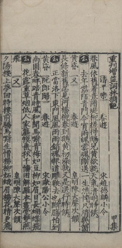 (明)張祿(1529)。[重刊增益詞林摘豔]。《數位典藏與數位學習聯合目錄》。http://catalog.digitalarchives.tw/item/00/08/6d/db.html(2025/01/16瀏覽)。