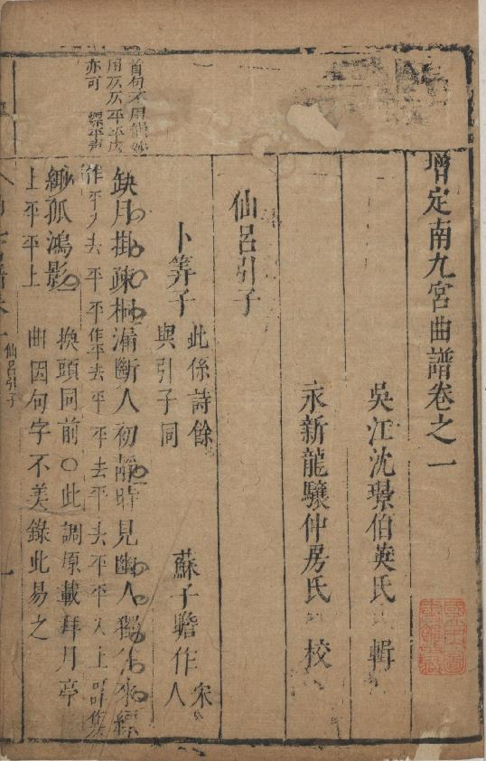 (明)沈璟(1567-1644)。[增定南九宮曲譜]。《數位典藏與數位學習聯合目錄》。http://catalog.digitalarchives.tw/item/00/08/6e/a5.html(2025/01/16瀏覽)。