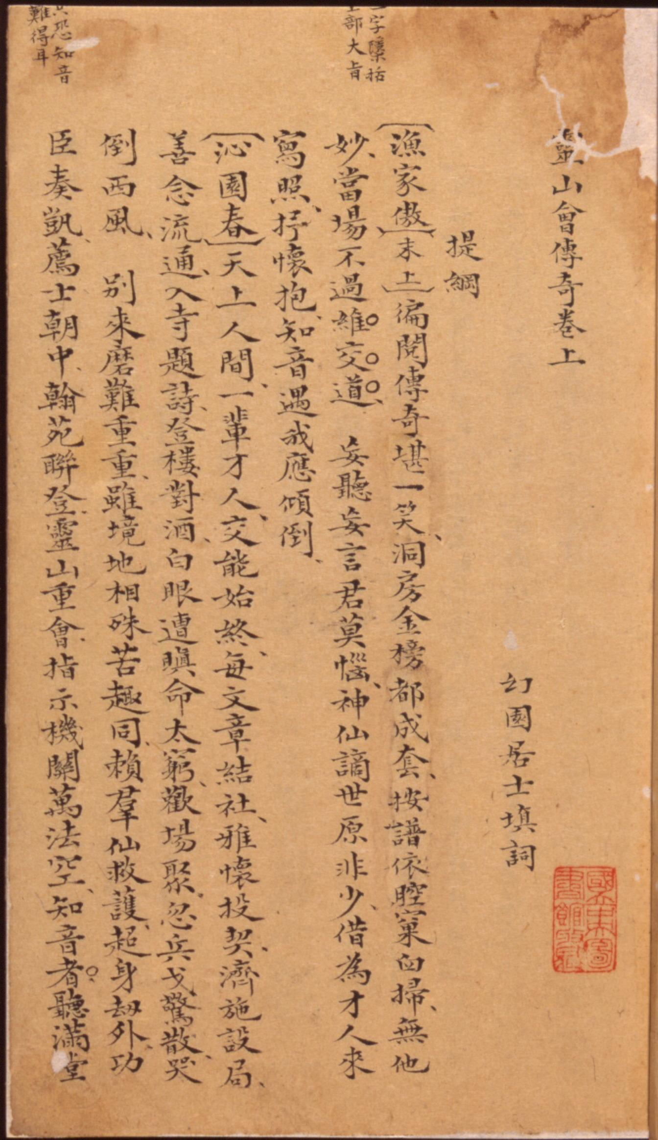 (清)幻園居士(1855)。[靈山會傳奇]。《數位典藏與數位學習聯合目錄》。http://catalog.digitalarchives.tw/item/00/08/6f/13.html(2025/01/16瀏覽)。