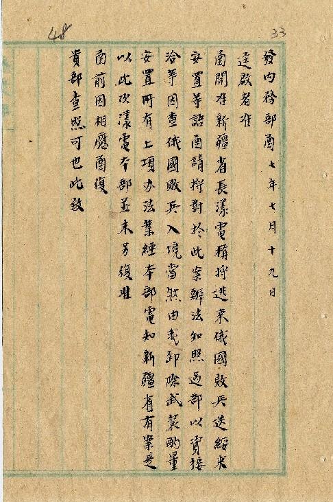 外交部(民國07年07月)。[件名:俄國敗兵事]。《數位典藏與數位學習聯合目錄》。http://catalog.digitalarchives.tw/item/00/0a/2d/7b.html(2025/05/20瀏覽)。