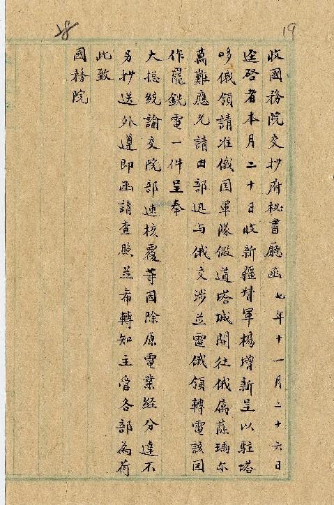 府秘書廳(民國07年11月)。[件名:俄軍假道塔城事]。《數位典藏與數位學習聯合目錄》。http://catalog.digitalarchives.tw/item/00/0a/2d/ee.html(2025/05/20瀏覽)。