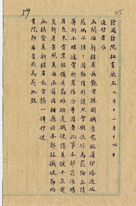 外交部(民國07年12月)。[件名:俄兵假道事]。《數位典藏與數位學習聯合目錄》。http://catalog.digitalarchives.tw/item/00/0a/2e/08.html(2025/05/20瀏覽)。