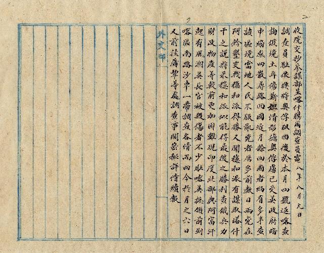 喀什噶爾調查員(民國08年08月)。[件名:喀什等處情形由]。《數位典藏與數位學習聯合目錄》。http://catalog.digitalarchives.tw/item/00/0a/2e/90.html(2025/05/20瀏覽)。