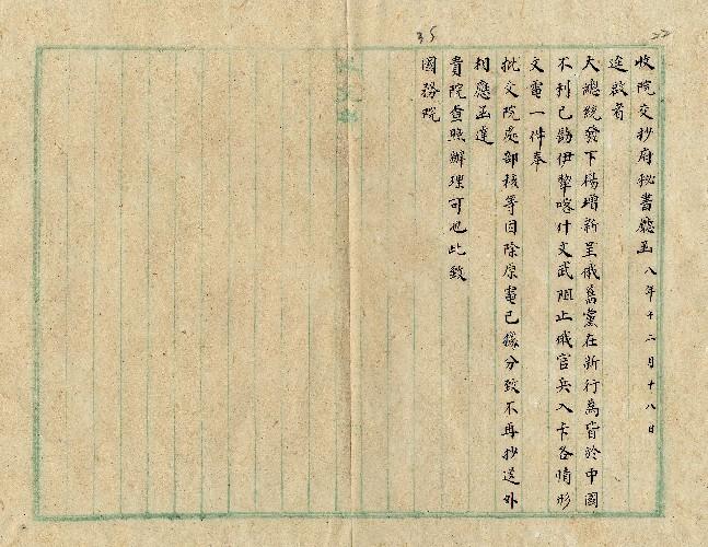 府秘書廳(民國08年12月)。[件名:新省阻止俄官兵入卡事]。《數位典藏與數位學習聯合目錄》。http://catalog.digitalarchives.tw/item/00/0a/2e/dd.html(2025/05/20瀏覽)。