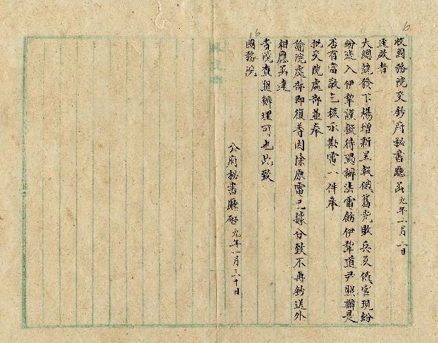 公府秘書廳(民國09年02月)。[件名:新督電稱待遇俄舊黨敗兵及俄官事]。《數位典藏與數位學習聯合目錄》。http://catalog.digitalarchives.tw/item/00/0a/2f/01.html(2025/05/20瀏覽)。
