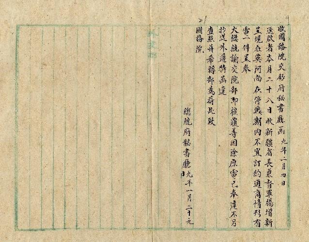 總統府秘書廳(民國09年02月)。[件名:英阿停戰期內不宜訂約通商]。《數位典藏與數位學習聯合目錄》。http://catalog.digitalarchives.tw/item/00/0a/2f/04.html(2025/05/20瀏覽)。