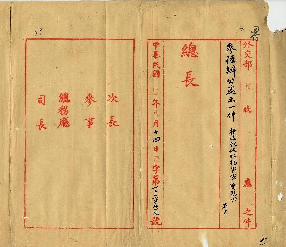 參陸辦公處(民國07年08月)。[件名:抄送致迪化楊督軍電稿由]。《數位典藏與數位學習聯合目錄》。http://catalog.digitalarchives.tw/item/00/0a/2f/d7.html(2025/05/20瀏覽)。