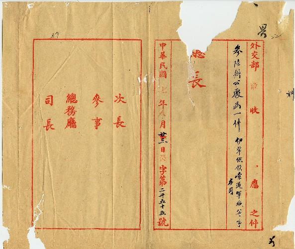 參陸辦公處(民國07年08月)。[件名:伊犁俄領索還軍械等事]。《數位典藏與數位學習聯合目錄》。http://catalog.digitalarchives.tw/item/00/0a/2f/e0.html(2025/05/20瀏覽)。