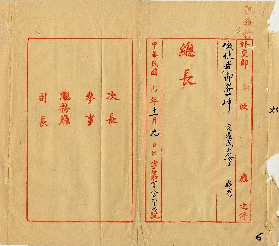 俄使署(民國07年11月)。[件名:請轉飭交還伊犁扣留俄軍械並希見复由]。《數位典藏與數位學習聯合目錄》。http://catalog.digitalarchives.tw/item/00/0a/30/1d.html(2025/05/20瀏覽)。