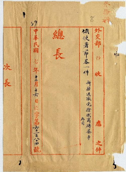 俄使署(民國07年12月)。[件名:新省過激黨搶俄商磚茶事]。《數位典藏與數位學習聯合目錄》。http://catalog.digitalarchives.tw/item/00/0a/30/3e.html(2025/05/20瀏覽)。
