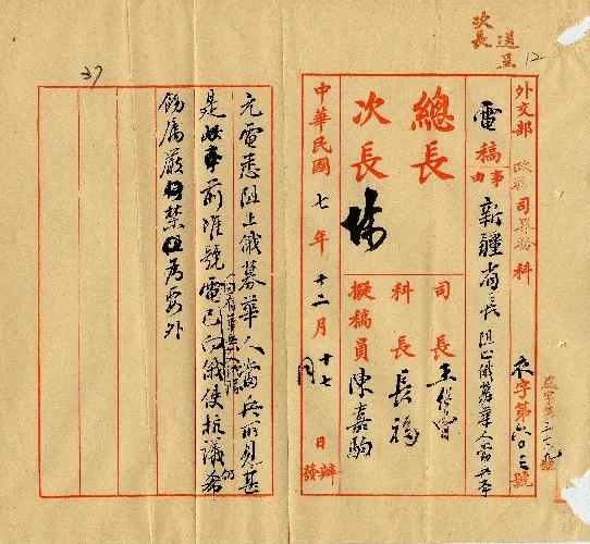 外交部(民國07年12月)。[件名:禁阻俄人募華兵事]。《數位典藏與數位學習聯合目錄》。http://catalog.digitalarchives.tw/item/00/0a/30/42.html(2025/05/20瀏覽)。