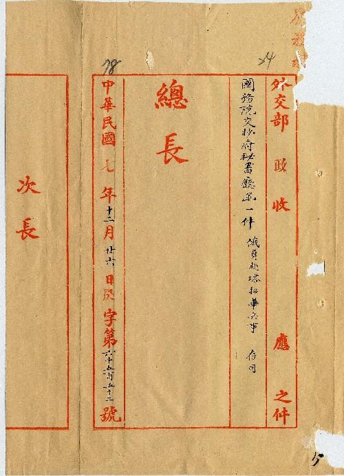 總統府秘書廳(民國07年12月)。[件名:新省電陳俄人來塔招華兵事奉請交院部處由]。《數位典藏與數位學習聯合目錄》。http://catalog.digitalarchives.tw/item/00/0a/30/4e.html(2025/05/20瀏覽)。