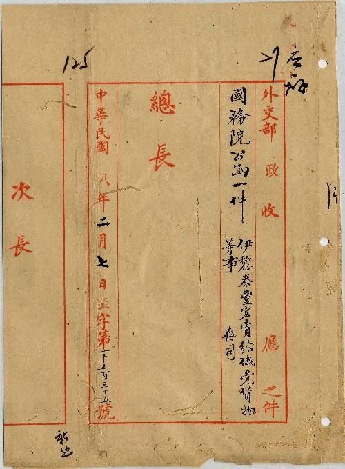 國務院(民國08年02月)。[件名:泰豊宏與俄黨貿易事請酌辦由]。《數位典藏與數位學習聯合目錄》。http://catalog.digitalarchives.tw/item/00/0a/30/6b.html(2025/05/20瀏覽)。