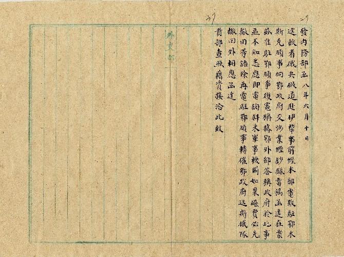 外交部(民國08年06月)。[件名:俄軍假道赴伊事鄂政府允撤回由]。《數位典藏與數位學習聯合目錄》。http://catalog.digitalarchives.tw/item/00/0a/31/4e.html(2025/05/20瀏覽)。