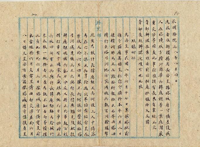 國務院(民國08年08月)。[件名:精河華兵被戕事請逕復新省由]。《數位典藏與數位學習聯合目錄》。http://catalog.digitalarchives.tw/item/00/0a/31/75.html(2025/05/20瀏覽)。