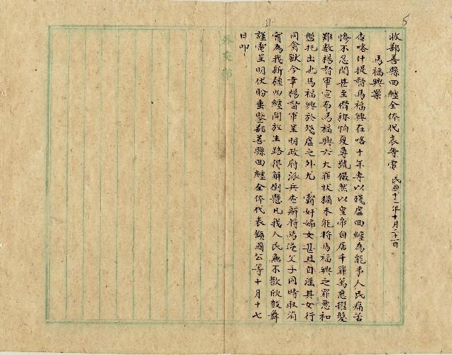 鄯善縣回纏全體代表等(民國13年10月)。[件名:馬福興案]。《數位典藏與數位學習聯合目錄》。http://catalog.digitalarchives.tw/item/00/0a/32/39.html(2025/05/20瀏覽)。