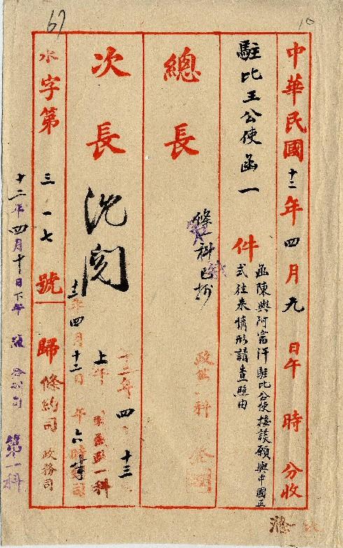 駐比王公使(民國12年02月)。[件名:函陳與阿富汗駐比公使接談願與我國正式往來情形請查照由]。《數位典藏與數位學習聯合目錄》。http://catalog.digitalarchives.tw/item/00/0a/32/4c.html(2025/05/20瀏覽)。