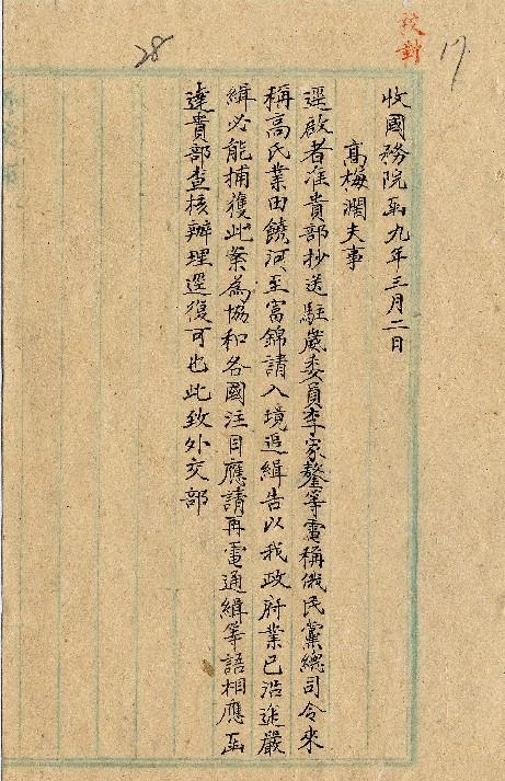 國務院(民國09年03月)。[件名:高梅闊夫事]。《數位典藏與數位學習聯合目錄》。http://catalog.digitalarchives.tw/item/00/0a/32/94.html(2025/05/20瀏覽)。