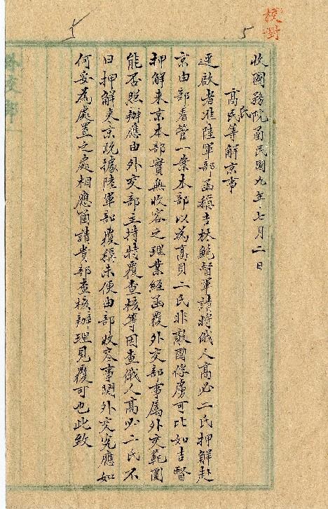 國務院(民國09年07月)。[件名:高氏等解京事]。《數位典藏與數位學習聯合目錄》。http://catalog.digitalarchives.tw/item/00/0a/32/d0.html(2025/05/20瀏覽)。