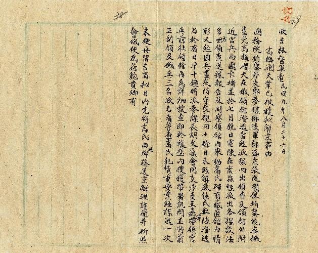 吉林督軍(民國09年08月)。[件名:高梅闊夫業已被獲擬解京事]。《數位典藏與數位學習聯合目錄》。http://catalog.digitalarchives.tw/item/00/0a/32/e8.html(2025/05/20瀏覽)。