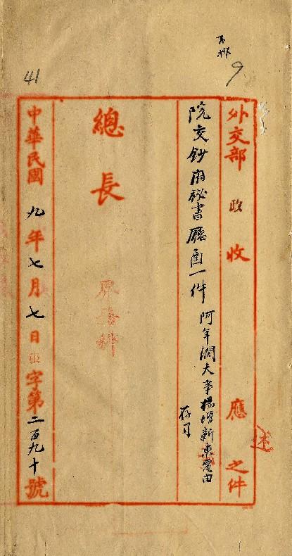 總統府秘書廳(民國09年07月)。[件名:阿年闊夫事楊增新東電由]。《數位典藏與數位學習聯合目錄》。http://catalog.digitalarchives.tw/item/00/0a/33/ea.html(2025/05/20瀏覽)。