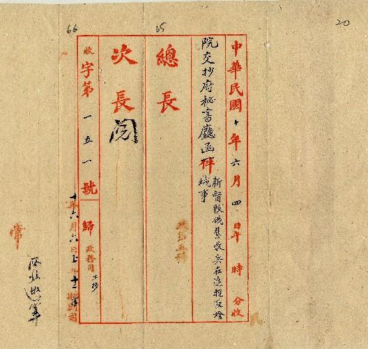 總統府秘書廳(民國10年06月)。[件名:新督報俄舊敗兵在途挖取槍械事]。《數位典藏與數位學習聯合目錄》。http://catalog.digitalarchives.tw/item/00/0a/34/3e.html(2025/05/20瀏覽)。