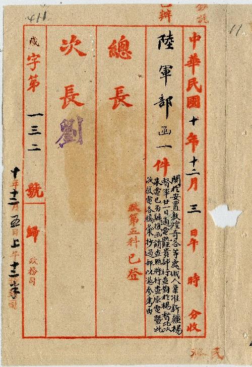 陸軍部(民國10年12月)。[件名:關於安置敦煌等處俄人事請將收發各電稿彙抄過部以憑參考由]。《數位典藏與數位學習聯合目錄》。http://catalog.digitalarchives.tw/item/00/0a/34/4c.html(2025/05/20瀏覽)。