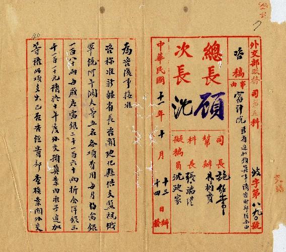 外交部(民國11年10月)。[件名:新省追加預算事請復財部核辦由]。《數位典藏與數位學習聯合目錄》。http://catalog.digitalarchives.tw/item/00/0a/34/56.html(2025/05/20瀏覽)。