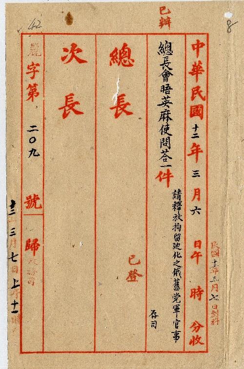 作者不詳(民國12年02月)。[件名:請釋放拘留俄軍官事]。《數位典藏與數位學習聯合目錄》。http://catalog.digitalarchives.tw/item/00/0a/34/57.html(2025/05/20瀏覽)。