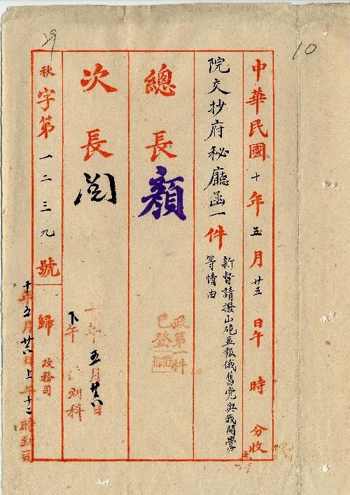 總統府秘書廳(民國10年05月)。[件名:新督請撥山砲並報俄舊黨與我開釁等情由]。《數位典藏與數位學習聯合目錄》。http://catalog.digitalarchives.tw/item/00/0a/34/c7.html(2025/05/20瀏覽)。