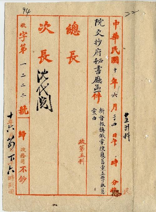 總統府秘書廳(民國10年06月)。[件名:新督報稱俄黨搜獲舊黨並擊敗舊黨由]。《數位典藏與數位學習聯合目錄》。http://catalog.digitalarchives.tw/item/00/0a/34/d3.html(2025/05/20瀏覽)。