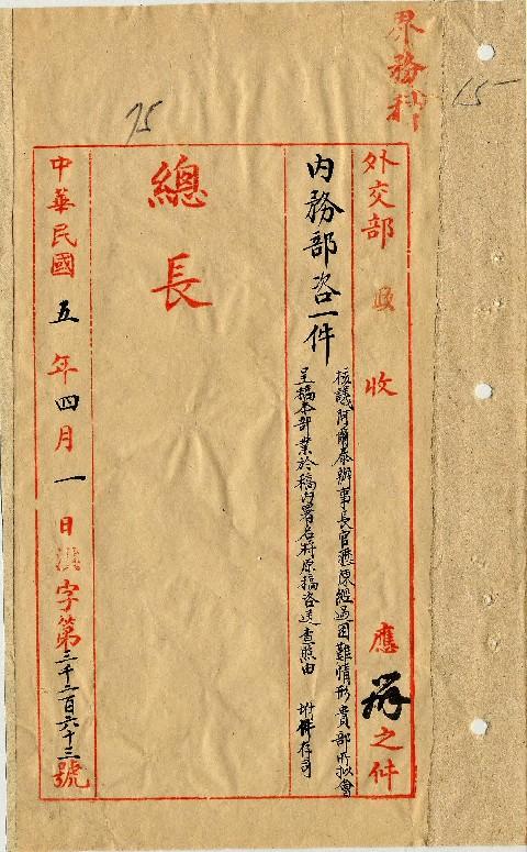 內務部(民國05年04月)。[件名:會呈稿業已署名咨送查照]。《數位典藏與數位學習聯合目錄》。http://catalog.digitalarchives.tw/item/00/0a/35/59.html(2025/05/20瀏覽)。