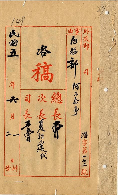 外交部(民國05年06月)。[件名:阿爾泰事前准政事堂抄交批令當經咨達阿爾泰辦事長官]。《數位典藏與數位學習聯合目錄》。http://catalog.digitalarchives.tw/item/00/0a/35/65.html(2025/05/20瀏覽)。