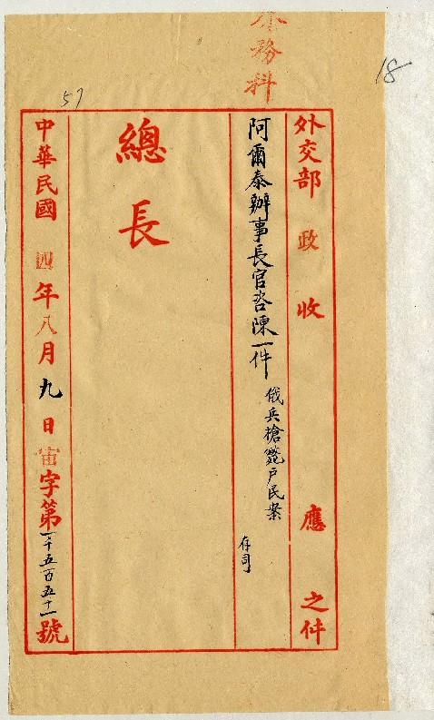 署阿爾泰辦事長官(民國04年08月)。[件名:沖呼爾案所有與俄領照會及派委人員文件抄錄咨陳以備查考]。《數位典藏與數位學習聯合目錄》。http://catalog.digitalarchives.tw/item/00/0a/36/19.html(2025/05/20瀏覽)。