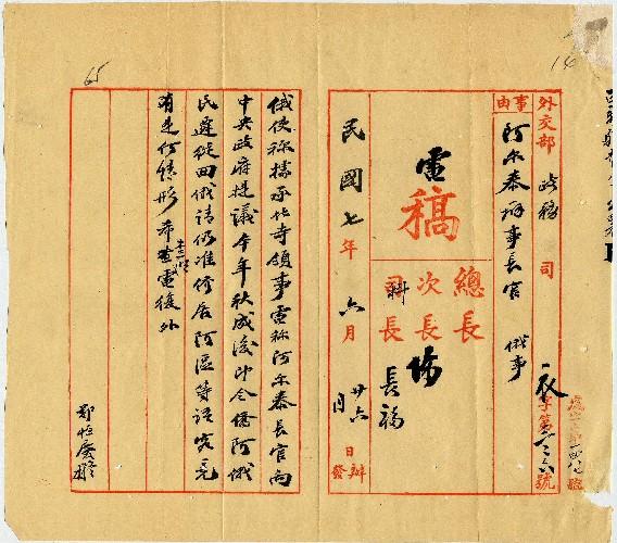 件名:抄送江省宋督電稱俄兵事李道交涉...