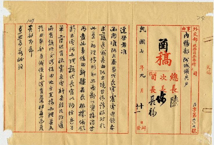 外交部(民國07年09月)。[件名:迪領要求護送俄兵由地方直接辦理未經本部交涉有案復請查照由]。《數位典藏與數位學習聯合目錄》。http://catalog.digitalarchives.tw/item/00/0a/36/54.html(2025/05/20瀏覽)。