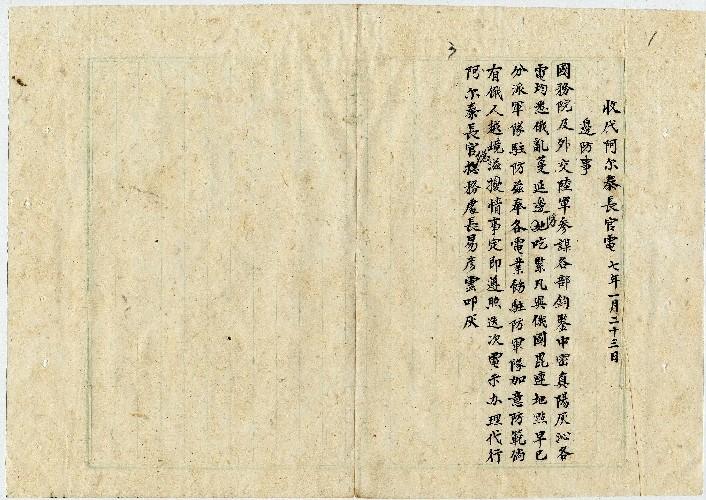 代阿爾泰長官(民國07年01月)。[件名:邊防事]。《數位典藏與數位學習聯合目錄》。http://catalog.digitalarchives.tw/item/00/0a/36/60.html(2025/05/20瀏覽)。