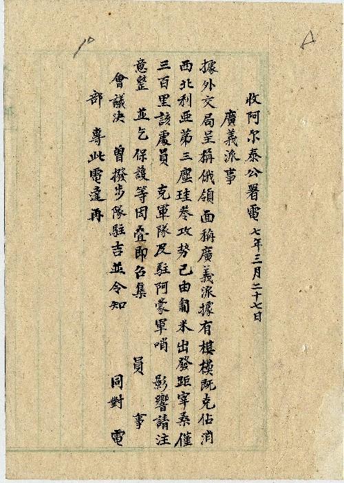 阿爾泰公署(民國07年03月)。[件名:廣義派事]。《數位典藏與數位學習聯合目錄》。http://catalog.digitalarchives.tw/item/00/0a/36/67.html(2025/05/20瀏覽)。
