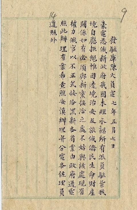 外交部(民國07年05月)。[件名:俄事]。《數位典藏與數位學習聯合目錄》。http://catalog.digitalarchives.tw/item/00/0a/37/7c.html(2025/05/20瀏覽)。