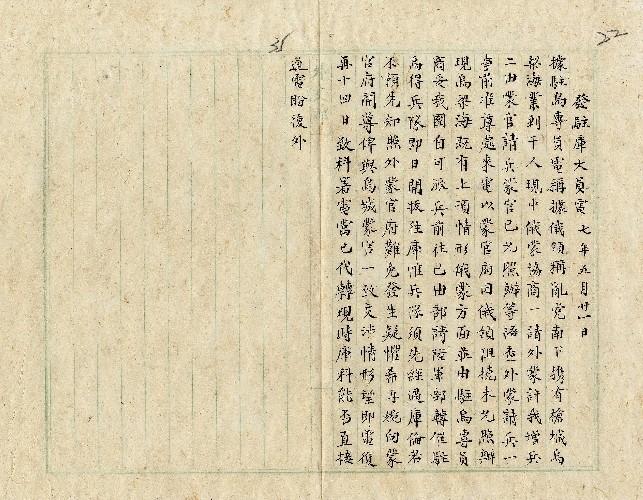 件名:報告司令部與遠東俄代表磋商關於...