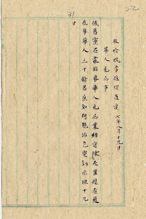 恰城李佐理員(民國07年08月)。[件名:華人充兵事]。《數位典藏與數位學習聯合目錄》。http://catalog.digitalarchives.tw/item/00/0a/37/c5.html(2025/05/20瀏覽)。