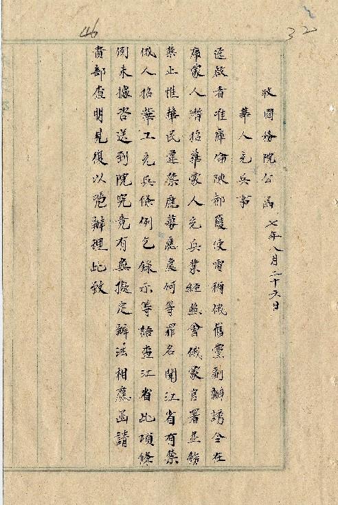 國務院(民國07年08月)。[件名:華人充兵事]。《數位典藏與數位學習聯合目錄》。http://catalog.digitalarchives.tw/item/00/0a/37/cf.html(2025/05/20瀏覽)。