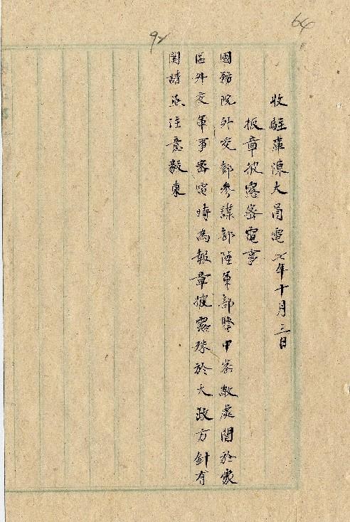 駐庫陳大員(民國07年10月)。[件名:報章披露密電事]。《數位典藏與數位學習聯合目錄》。http://catalog.digitalarchives.tw/item/00/0a/37/ef.html(2025/05/20瀏覽)。