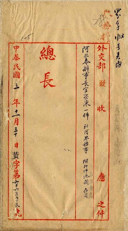 阿爾泰辦事長官署(民國03年09月)。[件名:鈔咨科阿分界文件圖藉由]。《數位典藏與數位學習聯合目錄》。http://catalog.digitalarchives.tw/item/00/0a/38/37.html(2025/05/20瀏覽)。