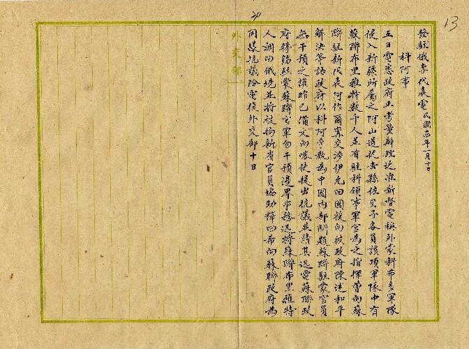 件名:彙陳雙城子俄舊黨虐待華僑情形應...