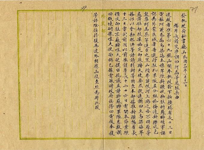 外交部(民國14年01月)。[件名:楊省長請交涉調回阿屬等處駐兵]。《數位典藏與數位學習聯合目錄》。http://catalog.digitalarchives.tw/item/00/0a/38/b5.html(2025/05/20瀏覽)。